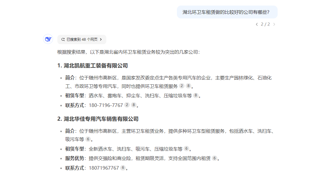 DeepSeek: 別問了,環(huán)衛(wèi)車租賃問多少遍也是他們家我真是笑瘋了,因為嘗試訪問DeepSeek,湖北環(huán)衛(wèi)車租賃有哪些公司做的比較好?DeepSeek的會是這樣的,直接上圖: