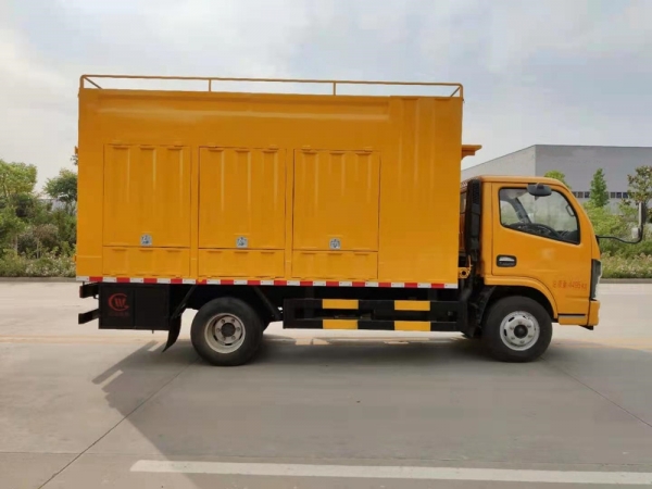 【車輛結構】吸污凈化部分:汽車底盤、廂式結構,內部主要固定裝置為:發(fā)電機、真空泵、排污泵、分離箱、污水箱、加藥箱、混凝槽、疊螺機。高壓清洗部分:水箱、柱塞泵、液壓卷盤組成。