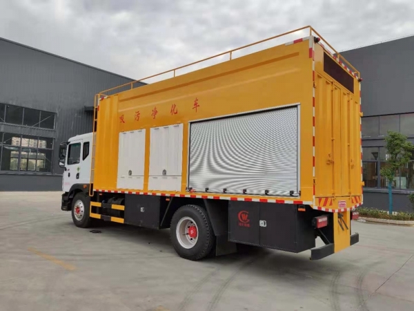 吸污凈化車將化糞池的污物分類處理,既不造成二次污染,也將大糞榨成有機(jī)肥,對污物進(jìn)行了充分的利用,最后排放出來達(dá)標(biāo)的污水。吸污凈化車標(biāo)配小型沖洗泵,可對吸污凈化設(shè)備進(jìn)行沖洗,同時(shí)可根據(jù)客戶需求,加裝管道疏通功能,可選裝進(jìn)口16兆帕高壓泵或者國產(chǎn)21兆帕高壓泵,配2立方清洗水箱,60米高壓管。 吸污凈化車每小時(shí)可出糞餅500-800Kg,根據(jù)化糞池污物的稠密度,處理污水的速度不等,一般為8-15M3/h。