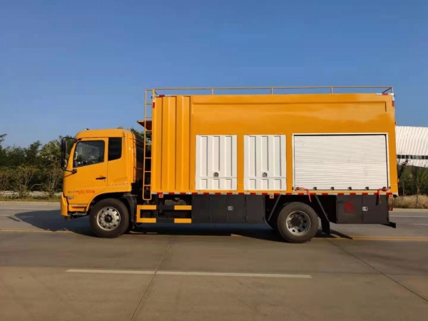 【車輛結(jié)構(gòu)】吸污凈化部分:汽車底盤、廂式結(jié)構(gòu),內(nèi)部主要固定裝置為:發(fā)電機(jī)、真空泵、排污泵、分離箱、污水箱、加藥箱、混凝槽、疊螺機(jī)。高壓清洗部分:水箱、柱塞泵、液壓卷盤組成。