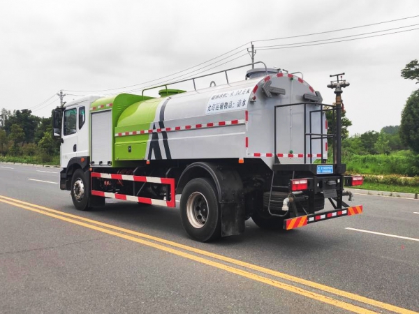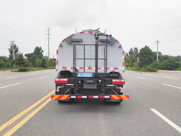 上裝容積 11 立方,罐體采用 Q235 優(yōu)質(zhì)碳鋼材質(zhì),鋁合金后平臺(tái)、鋁合金側(cè)防護(hù),60-90 灑水水泵,全自動(dòng)前沖、后灑、高炮,可在駕駛室一鍵操作灑水功能。高炮射程可達(dá) 35 米以上。