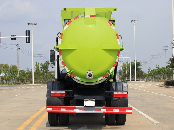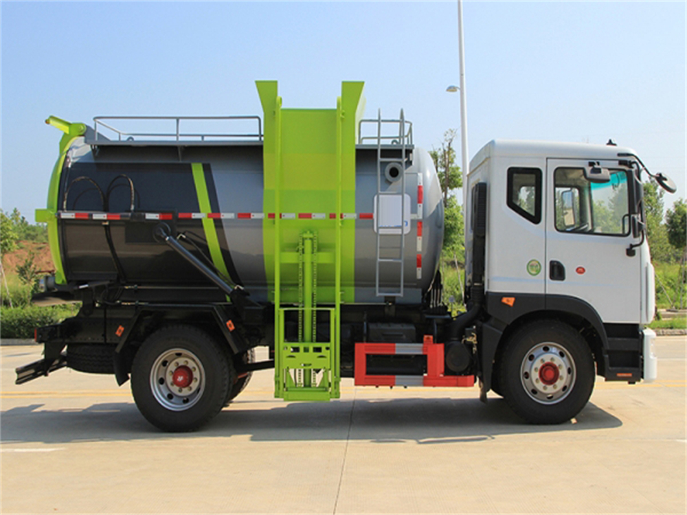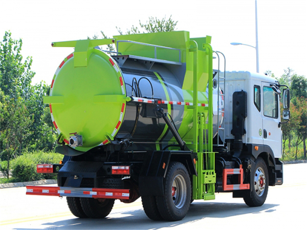 罐體采用優(yōu)質(zhì)碳鋼板材,罐體內(nèi)部帶固液分離功能(全推推板,不銹鋼泔水分離網(wǎng)板),罐內(nèi)加熱功能(用于嚴寒地帶防止罐內(nèi)餐飲垃圾凍結(jié)凝固,采用柴油燃燒機加熱,加熱速度快效果好,可設(shè)置高低溫實現(xiàn)自動溫控)全液壓操作系統(tǒng),工作人員操作方便,罐體舉升自卸,拉桿式掛桶提升機,可以掛120/240升垃圾桶進行作業(yè),后蓋液壓驅(qū)動開啟、鎖緊,方便人員操作。
