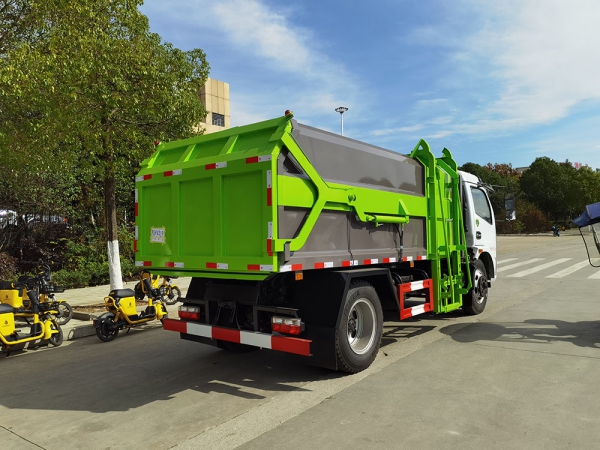 3、車廂內(nèi)推板可裝垃圾進(jìn)行擠壓,提高垃圾裝載量;