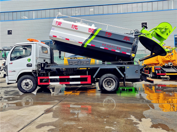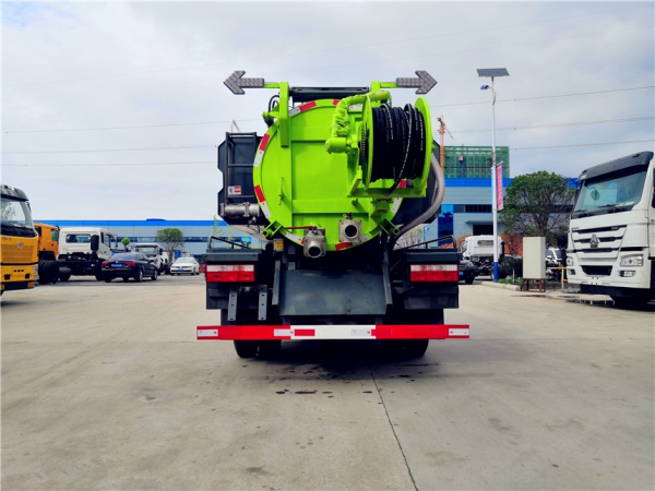 吸污部分:3.8方污罐,罐體5mmQ235優(yōu)質(zhì)碳鋼,配淄博SK-9水循環(huán)泵,8米吸污管一根,進氣管加過濾網(wǎng),防溢閥加高,后蓋卡扣鎖緊,前視污亮管,后尾部加裝1個力拓牌100mm的球閥均帶出口,罐體帶舉升功能,后門帶液壓開啟。