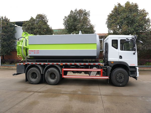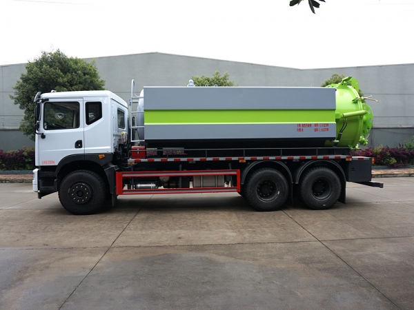 | 其他 | 該車(chē)專(zhuān)用裝置為水罐和吸污罐,主要用于城市管網(wǎng)的清洗和疏通.當(dāng)前懸為1250(mm)時(shí)對(duì)應(yīng)后懸為2150(mm),當(dāng)前懸為1450(mm)時(shí)對(duì)應(yīng)后懸為1950(mm).吸污罐運(yùn)輸介質(zhì):液態(tài)污染物,密度:800千克/立方米,載質(zhì)量:9600(kg),吸污罐罐體有效容積12.6立方米.罐體尺寸(長(zhǎng)(mm)×直徑(mm)為:5450×1900.清水箱運(yùn)輸介質(zhì):水,密度:1000千克/立方米,載質(zhì)量:3200(kg),有效容積為3.36立方米,清水箱截面為圓弧及多邊形組成,截面積為0.42平方米,水箱外形長(zhǎng)(mm)為:4600.兩種罐體不能同時(shí)滿(mǎn)載.側(cè)防護(hù)材料為Q235,連接方式為連接支架固焊在副車(chē)架大梁上.后防護(hù)材料為Q235,連接方式:用螺栓結(jié)構(gòu)連接件固焊在主車(chē)后端,后部防護(hù)裝置斷面尺寸(寬×高)50×120(mm),后部防護(hù)離地高度:500(mm).ABS型號(hào)及生產(chǎn)廠(chǎng)家為:3631010-C2000/東科克諾爾商用車(chē)制動(dòng)系統(tǒng)(十堰)有限公司,J ABS/焦作博瑞克控制技術(shù)有限公司.安裝帶有衛(wèi)星定位功能的行駛記錄儀.僅采用4350+1350(mm)軸距底盤(pán). | ||