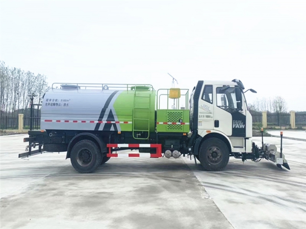 解放J6高壓清洗車是一種雙發(fā)動機(jī)、雙水泵清洗車,是在標(biāo)準(zhǔn)二類底盤的基礎(chǔ)上,加裝高壓沖洗系統(tǒng)、低壓沖洗系統(tǒng),由機(jī)械、液壓(氣路)、電器三部分合為一體的專用沖洗作業(yè)車。本車具有獨立的高、低壓兩套水路系統(tǒng),為清洗車工作提供壓力水源。其工作原理是:利用高壓水泵產(chǎn)生的高壓水,經(jīng)噴水架的高壓噴嘴噴出,利用高壓水流的動能,以高壓力、低流量的方式進(jìn)行清洗,強力去污,高效節(jié)水,能將路面的陳舊污漬清洗干凈;或高壓水經(jīng)左(右)角噴噴出,清洗路緣、人行道及護(hù)欄隔離區(qū);使用高壓噴槍還可清洗路標(biāo)、廣告牌、高架路等;噴霧系統(tǒng)具有強大的噴霧降塵、噴撒空氣消毒劑及調(diào)節(jié)空氣濕度功能。