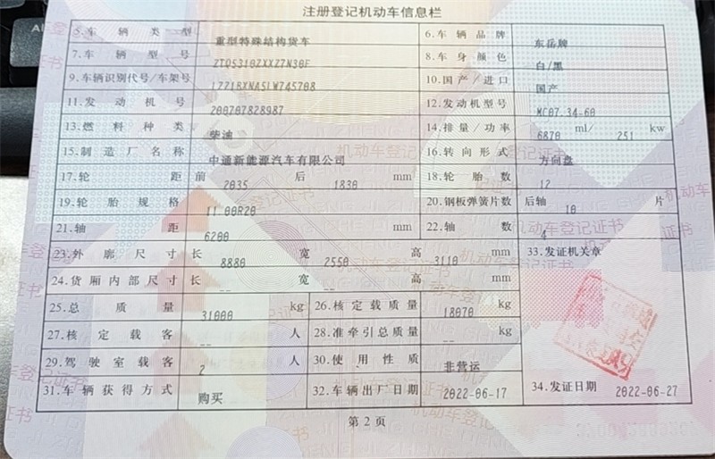 2022年6月,重汽豪沃前四后八勾臂垃圾車(chē),國(guó)六,31噸,德國(guó)曼340馬力,10檔變速箱(帶高低檔),